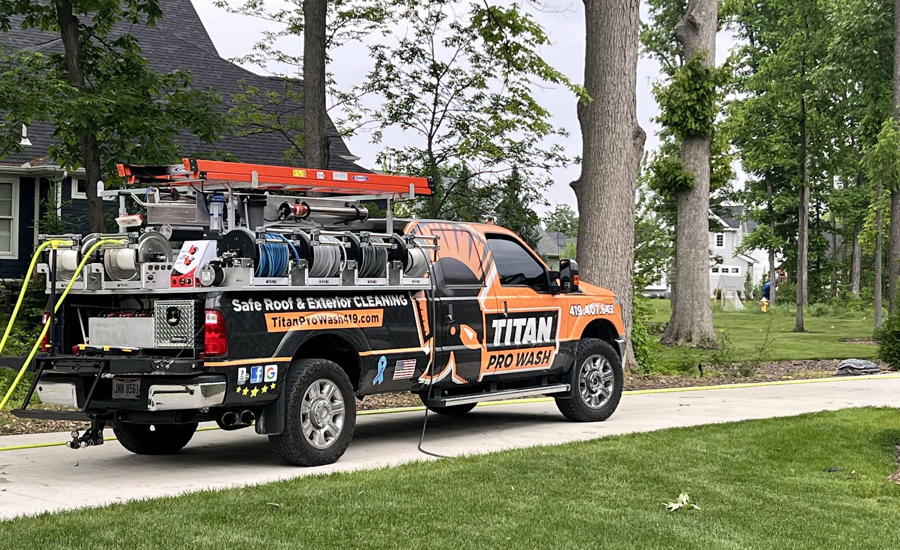 The soft washing technique often incorporates biodegradable disinfectants to eliminate moss, fungus, bacteria, algae, etc.